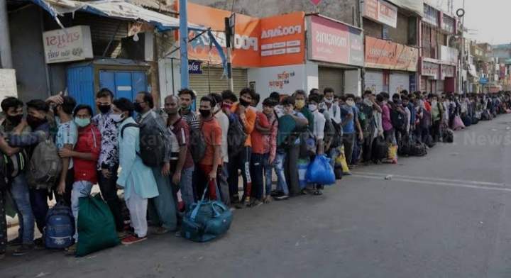 बड़े पैमाने पर प्रवासी मजदूरों का पलायन।